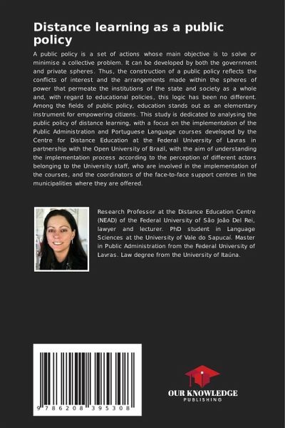 A public policy is a set of actions whose main objective is to solve or minimise a collective problem. It can be developed by both the government and private spheres. Thus, the construction of a public policy reflects the conflicts of interest and the arrangements made within the spheres of power that permeate the institutions of the state and society as a whole and, with regard to educational policies, this logic has been no different. Among the fields of public policy, education stands out as an elementary instrument for empowering citizens. This study is dedicated to analysing the public policy of distance learning, with a focus on the implementation of the Public Administration and Portuguese Language courses developed by the Centre for Distance Education at the Federal University of Lavras in partnership with the Open University of Brazil, with the aim of understanding the implementation process according to the perception of different actors belonging to the University staff, who are involved in the implementation of the courses, and the coordinators of the face-to-face support centres in the municipalities where they are offered.