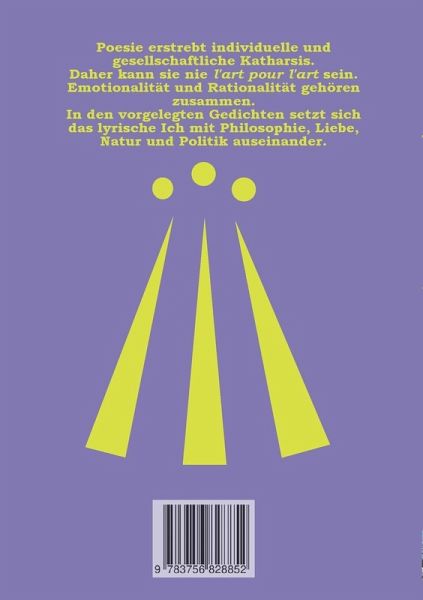 Poesie erstrebt individuelle und gesellschaftliche Katharsis. Daher kann sie nie l'art pour l'art sein. Emotionalität und Rationalität gehören zusammen. In den vorgelegten Gedichten setzt sich das lyrische Ich mit Philosophie, Liebe, Natur und Politik auseinander.