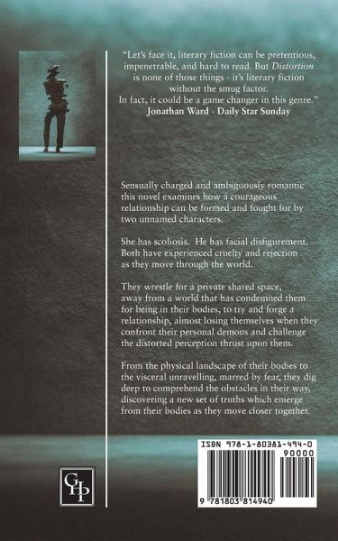 Sensually charged and ambiguously romantic this novel examines how a courageous relationship can be formed and fought for by two unnamed characters. She has scoliosis. He has facial disfigurement. Both have experienced cruelty and rejection as they move through the world. They wrestle for a private shared space, away from a world that has condemned them for being in their bodies, to try and forge a relationship, almost losing themselves when they confront their personal demons and challenge the distorted perception thrust upon them. From the physical landscape of their bodies to the visceral unravelling, marred by fear, they dig deep to comprehend the obstacles in their way, discovering a new set of truths which emerge from their bodies as they move closer together.