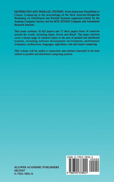 Distributed and Parallel Systems: From Instruction Parallelism to Cluster Computing is the proceedings of the third Austrian-Hungarian Workshop on Distributed and Parallel Systems organized jointly by the Austrian Computer Society and the MTA SZTAKI Computer and Automation Research Institute. This book contains 18 full papers and 12 short papers from 14 countries around the world, including Japan, Korea and Brazil. The paper sessions cover a broad range of research topics in the area of parallel and distributed systems, including software development environments, performance evaluation,…mehr