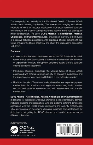 The complexity and severity of the Distributed Denial of Service (DDoS) attacks are increasing day-by-day. The Internet has a highly inconsistent structure in terms of resource distribution. Numerous technical solutions are available, but those involving economic aspects have not been given much consideration. The book, DDoS Attacks - Classification, Attacks, Challenges, and Countermeasures, provides an overview of both types of defensive solutions proposed so far, exploring different dimensions that would mitigate the DDoS effectively and show the implications associated with them.