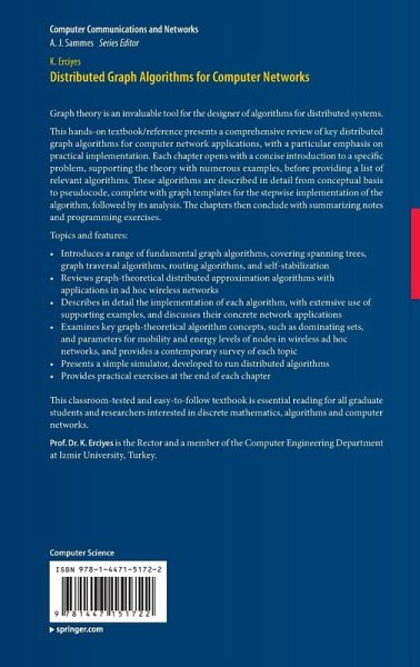 This book presents a comprehensive review of key distributed graph algorithms for computer network applications, with a particular emphasis on practical implementation. Topics and features: introduces a range of fundamental graph algorithms, covering spanning trees, graph traversal algorithms, routing algorithms, and self-stabilization; reviews graph-theoretical distributed approximation algorithms with applications in ad hoc wireless networks; describes in detail the implementation of each algorithm, with extensive use of supporting examples, and discusses their concrete network applications; examines key graph-theoretical algorithm concepts, such as dominating sets, and parameters for mobility and energy levels of nodes in wireless ad hoc networks, and provides a contemporary survey of each topic; presents a simple simulator, developed to run distributed algorithms; provides practical exercises at the end of each chapter.