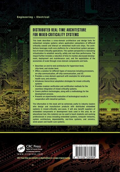 This book describes a cross-domain architecture and design tools for networked complex systems where application subsystems of different criticality coexist and interact on networked multi-core chips. The architecture leverages multi-core platforms for a hierarchical system perspective of mixed-criticality applications. This system perspective is realized by virtualization to establish security, safety and real-time performance. The impact further includes a reduction of time-to-market, decreased development, deployment and maintenance cost, and the exploitation of the economies of scale through cross-domain components and tools.Describes an end-to-end architecture for hypervisor-level, chip-level, and cluster level. Offers a solution for different types of resources including processors, on-chip communication, off-chip communication, and I/O. Provides a cross-domain approach with examples for wind-power, health-care, and avionics. Introduces hierarchical adaptation strategies for mixed-criticality systems Provides modular verification and certification methods for the seamless integration of mixed-criticality systems. Covers platform technologies, along with a methodology for the development process. Presents an experimental evaluation of technological results in cooperation with industrial partners. The information in this book will be extremely useful to industry leaders who design and manufacture products with distributed embedded systems in mixed-criticality use-cases. It will also benefit suppliers of embedded components or development tools used in this area. As an educational tool, this material can be used to teach students and working professionals in areas including embedded systems, computer networks, system architecture, dependability, real-time systems, and avionics, wind-power and health-care systems.