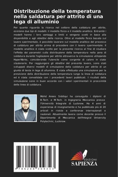 Per quanto riguarda la ricerca nel settore della saldatura per attrito, esistono due tipi di modelli: il modello fisico e il modello analitico. Entrambi i modelli hanno i loro vantaggi e limiti e vengono scelti in base alla disponibilità e agli obiettivi della ricerca. Oltre al modello fisico basato sul lavoro sperimentale, è possibile lavorare sul modello analitico del processo di saldatura per attrito prima di procedere con il lavoro sperimentale. Il modello analitico è stato scelto per la presente ricerca al fine di studiare l'effetto dei parametri sulla distribuzione della temperatura nella zona di saldatura durante l'agitazione per attrito attraverso la simulazione utilizzando HyperWorks, considerando l'utensile come sorgente di calore in stato stazionario. Per raggiungere gli obiettivi del presente lavoro, sono stati sviluppati diversi modelli di simulazione della saldatura per attrito di un giunto di testa in lega di alluminio. È stata effettuata una simulazione per la previsione della distribuzione della temperatura lungo la linea di saldatura ed è stata convalidata con i precedenti lavori pubblicati. I risultati della simulazione sono in buon accordo con i valori sperimentali in prossimità della linea di saldatura.