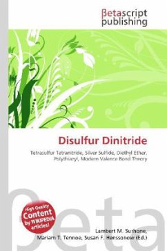 Please note that the content of this book primarily consists of articles available from Wikipedia or other free sources online. Disulfur dinitride is the chemical compound S2N2 with a cyclic square planar structure. Passing gaseous S4N4 over silver metal wool at 250-300°C at low pressure (1mm Hg) yields cyclic S2N2. The S2N2 molecule is virtually square and planar. The S-N bond lengths are 165.1pm and 165.7pm and the bond angles are very close to 90. The S2N2 molecule is isoelectronic with the S42+ and has 6 electrons. The bonding has been investigated using a spin-coupled valence bond method and is described as having four framework sigma bonds, with the N atoms bearing a high negative charge and the S atoms a corresponding positive charge. Two electrons from the sulfur atoms are coupled across the ring making the molecule overall a singlet diradical.
