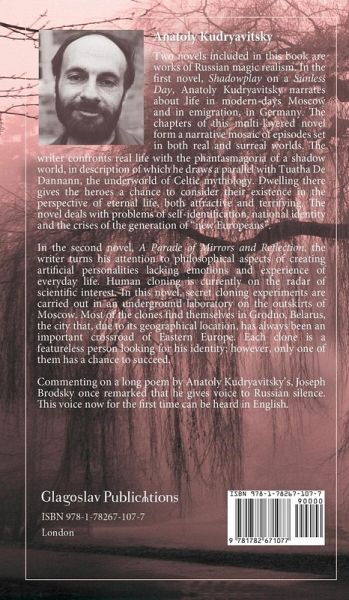 The two novels included in this book are works of Russian magic realism. In the first novel, Shadowplay on a Sunless Day, Anatoly Kudryavitsky writes about life in modern-day Moscow and about an emigrant's life in Germany. The chapters of this multi-layered novel form a narrative mosaic of episodes set in both real and surreal worlds. The writer confronts real life with the phantasmagoria of a shadow world, drawing a parallel with Tuatha Dé Danann, the underworld of Celtic mythology. Spending time there gives the heroes a chance to consider their existence from perspective of eternal life, which seems both attractive and terrifying. The novel deals with problems of self-identification, national identity and the crises of the generation of "new Europeans". In the second novel, A Parade of Mirrors and Reflection, the writer turns his attention to human cloning, an issue very much at the centre of current scientific debate. In this novel, he looks at the philosophical aspects of creating artificial personalities who lack emotions and experience of everyday human life through a story about secret cloning experiments being carried out in an underground laboratory on the outskirts of Moscow. Most of the clones find themselves in Grodno, Belarus, a city that, due to its geographical location, has always been an important crossroads in Eastern Europe. Each clone is a featureless person looking for their own identity; however, only one of them has a chance to succeed.