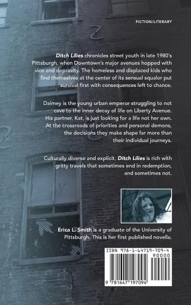 Ditch Lilies chronicles street youth in late 1980's Pittsburgh, when Downtown's major avenues hopped with vice and depravity. The homeless and displaced kids who find themselves at the center of its sensual squalor put survival first with consequences left to chance. Daimey is the young urban emperor struggling to not cave to the inner decay of life on Liberty Avenue. His partner, Kat, is just looking for a life not her own. At the crossroads of priorities and personal demons, the decisions they make shape far more than their individual journeys. Culturally diverse and explicit, Ditch Lilies is rich with gritty travels that sometimes end in redemption, and sometimes not.