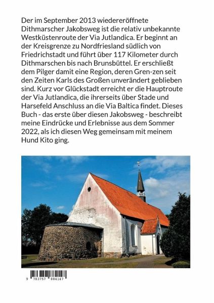 Der im September 2013 wiedereröffnete Dithmarscher Jakobsweg ist die relativ unbekannte Westküstenroute der Via Jutlandica. Er beginnt an der Kreisgrenze zu Nordfriesland südlich von Friedrichstadt und führt über 117 Kilometer durch Dithmarschen bis nach Brunsbüttel. Er erschließt dem Pilger damit eine Region, deren Gren-zen seit den Zeiten Karls des Großen unverändert geblieben sind. Kurz vor Glückstadt erreicht er die Hauptroute der Via Jutlandica, die ihrerseits über Stade und Harsefeld Anschluss an die Via Baltica findet. Dieses Buch - das erste über diesen Jakobsweg - beschreibt meine Eindrücke und Erlebnisse aus dem Sommer 2022, als ich diesen Weg gemeinsam mit meinem Hund Kito ging.