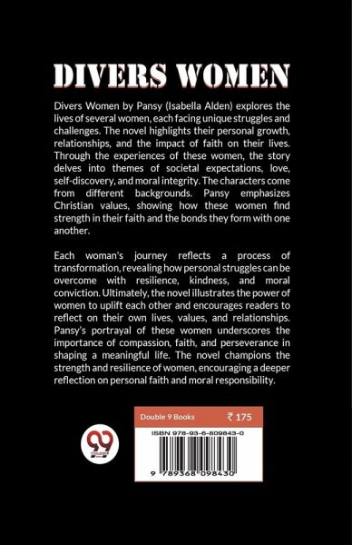 Divers Women by Pansy (Isabella Alden) explores the lives of several women, each facing unique struggles and challenges. The novel highlights their personal growth, relationships, and the impact of faith on their lives. Through the experiences of these women, the story delves into themes of societal expectations, love, self-discovery, and moral integrity. The characters come from different backgrounds. Pansy emphasizes Christian values, showing how these women find strength in their faith and the bonds they form with one another. Each woman's journey reflects a process of transformation, revealing how personal struggles can be overcome with resilience, kindness, and moral conviction. Ultimately, the novel illustrates the power of women to uplift each other and encourages readers to reflect on their own lives, values, and relationships. Pansy's portrayal of these women underscores the importance of compassion, faith, and perseverance in shaping a meaningful life. The novel champions the strength and resilience of women, encouraging a deeper reflection on personal faith and moral responsibility.
