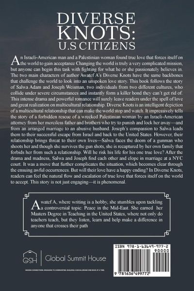 An Israeli-American man and a Palestinian woman found true love that forces itself on the world to gain acceptance Changing the world is truly a very complicated mission, but anyone can begin this task with fighting for what he or she passionately believes in. The two main characters of author Awatef A's Diverse Knots have the same backbones that challenge the world to look into an unspoken love story. This book follows the story of Salwa Adam and Joseph Weisman, two individuals from two different cultures, who collide under severe circumstances and instantly form a killer bond they can't get rid of. This intense drama and powerful romance will surely leave readers under the spell of love and great realization on multicultural relationship. Diverse Knots is an intelligent depiction of a multicultural relationship that can make the world stop and watch. It impressively tells the story of a forbidden rescue of a wrecked Palestinian woman by an Israeli-American attorney from her merciless father and brothers who try to punish and lock her away-and from an arranged marriage to an abusive husband. Joseph's compassion to Salwa leads them to their successful escape from Israel and back to the United States. However, their relationship brings threat to their own lives-Salwa faces the doom of a gunman who shoots her and though she survives the gun shots, she is recaptured by her own family that forbids her from such a relationship. Will he risk his life for his one true love? After the drama and madness, Salwa and Joseph find each other and elope in marriage at a NYC court. It was a move that further complicates the situation, which becomes clear through the ensuing awful occurrences. But will their love have a happy ending? In Diverse Knots, readers can feel the natural flow and escalation of true love that forces itself on the world to accept. This story is not just engaging-it is phenomenal.