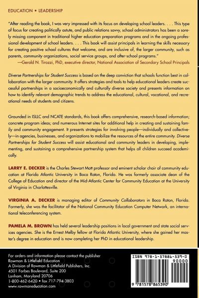 School and community leaders will find powerful strategies for working together to assure the success of our young people. -- Martin J. Blank, staff director, Coalition for Community Schools Discourse on the future of our nation's educational system must reflect the changing societal landscape and consider the increasing demands and expectations placed on today's educators. The authors of Diverse Partnerships for Student Success: Strategies and Tools to Help School Leaders have offered such dialogue, providing readers with a thoughtful examination of how school leaders can collaborate more effectively with parents, community members, and other education stakeholders to improve schools and help young people become successful adults. This is an excellent reference for the 21st century school leader and is one that should be added to your collection of education resources. -- Vincent L. Ferrandino, executive director, National Association of Elementary School Principals (NAESP) Diverse Partnerships for School Success underscores the vital role for collaboration in the education of our nation's children by calling not only for partnerships between schools and parents, but also for partnerships between schools and communities. Its authors clearly understand that schools alone cannot take full responsibility for education, and they offer an insightful, practical guide to school administrators for how they can reach out and engage the other stakeholders. -- David Mathews, president, Kettering Foundation This book provides educators with important "how to" information for developing and sustaining successful partnerships with families and communities. If we are genuinely committed to strengthening our public schools and closing the achievement gap, it can't be accomplished without the support and participation of the families and community it serves. The authors have dedicated all their professional lives to community education and partnership building-I hope you take advantage of their expertise. -- Sue Ferguson, chair, National Coalition for Parent Involvement in Education (NCPIE) After reading the book, I was very impressed with its focus on developing school leaders who have the capacity for creating enlightened school visions, building supportive educational partnerships, broadening communication to include active school communities, and becoming strong public relations advocates for their schools. This type of focus for creating politically astute, and public relations savvy, school administrators has been a sorely missing component in traditional higher education preparation programs and in the ongoing professional development of school leaders...The authors remind us that good administrators must know how to establish strong community partnerships in order to develop the comprehensive resources necessary to meet the complex and myriad needs of all children...This book will assist principals in learning the skills necessary for creating positive school cultures that welcome, and are inclusive of, the larger community, such as parents, community organizations, social service groups, and after-school programs. -- Gerald N. Tirozzi, Ph.D., executive director, National Association of Secondary School Principals (NASSP) Diverse Partnerships for Student Success is an outstanding resource, a solid foundation on which educational leaders can build effective and imaginative connections to support students of all backgrounds. -- Anne T. Henderson, senior fellow, Community Involvement Program, Annenberg Institute for School Reform We must increase public responsibility for public education if we truly desire an effective, humane, and sustainable student achievement improvement strategy. Diverse Partnerships for School Success emphatically reminds us that our best schools are robust and dynamic collaborations between communities and schools. This insightful book is both conceptual and practical, a real tool for citizens and educators juggling dozens of competing academic and accountability demands. Only by increasing public understanding of the needs of schools will we be able to make public education our #1 public priority. -- Wendy D. Puriefoy, president, Public Education Network, Washington, D.C. Many institutions, including ours, have long known how critically important it is for schools to create and maintain strong partnerships with families and communities. For the past 70-some years, we have helped develop and support ways for schools to be fully engaged with their communities. This book delivers the latest practical information about how to do this as both an educational and a community leader in today's 24/7, media/marketing-focused global environment. -- Willam S. White, president and CEO, the Charles Stewart Mott Foundation Diverse Partnerships for Student Success is a timely addition to a growing body of work on school, family, and community partnerships, collaborative leadership, and public engagement in education. Educational administrators and those who train and supervise them will find much in the book that is useful and informative. The book offers multiple, well-developed rationales for why school outreach and partnerships are important including relevant statistics on schools, students, and families pulled from a variety of sources. The book also offers a variety of web resources to help educational leaders learn more about different approaches to and resources for diverse partnerships. Readers ...will leave the book with a heightened awareness that effective schools are collaborative schools, and a clear understanding of the types of collaboration in which schools can and should engage to achieve important goals for students, families, and communities. The book succeeds in stressing the importance of a systematic and deliberate approach to partnership planning; competent, politically astute, collaborative school leaders for effective partnerships; and a strong sense that the tim