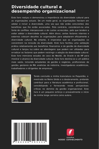 Este livro realçou e demonstrou a importância da diversidade cultural para as organizações actuais. De um modo geral, as organizações hesitam em adotar e incluir a diversidade, uma vez que não estão conscientes dos benefícios que lhe estão associados. Pelo contrário, consideram-na uma fonte de conflitos interpessoais e de custos acrescidos, pelo que tendem a evitar adotar a diversidade cultural. Além disso, certos factores internos e externos colocam desafios às organizações para adoptarem eficazmente a diversidade cultural. No entanto, é imperativo que as organizações se concentrem na inclusão da diversidade. Este livro facilitou uma validação prática relativamente aos benefícios financeiros e de gestão da diversidade cultural e lançou luz sobre as abordagens que podem ser utilizadas para erradicar os factores que podem restringir a adoção da diversidade cultural. Este livro menciona estudos de caso da Nestlé, da Oracle e da HP para mostrar o alcance da diversidade cultural. Este livro destina-se a um público mais vasto, incluindo estudantes de gestão e negócios, profissionais de gestão, gestores de RH, analistas da indústria, investigadores académicos, trabalhadores e dirigentes de empresas.