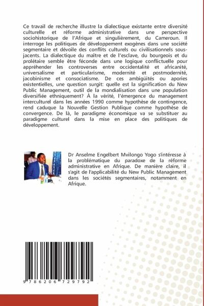 Ce travail de recherche illustre la dialectique existante entre diversité culturelle et réforme administrative dans une perspective sociohistorique de l'Afrique et singulièrement, du Cameroun. Il interroge les politiques de développement exogènes dans une société segmentaire et dévoile des conflits culturels ou civilisationnels sous-jacents. La dialectique du maître et de l'esclave, du bourgeois et du prolétaire semble être féconde dans une logique conflictuelle pour appréhender les controverses entre occidentalité et africanité, universalisme et particularisme, modernité et postmodernité, jacobinisme et consociatisme. De ces ambigüités ou apories existentielles, une question surgit: quelle est la signification du New Public Management, outil de la mondialisation dans une population diversifiée ethniquement? À la vérité, l'émergence du management interculturel dans les années 1990 comme hypothèse de contingence, rend caduque la Nouvelle Gestion Publique comme hypothèse de convergence. De là, le paradigme économique va se substituer au paradigme culturel dans la mise en place des politiques de développement.