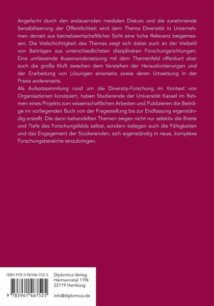 Als Aufsatzsammlung rund um die Diversity-Forschung im Kontext von Organisationen konzipiert, haben Studierende der Universität Kassel im Rahmen eines Projekts zum wissenschaftlichen Arbeiten und Publizieren die Beiträge im vorliegenden Buch von der Fragestellung bis zur Endfassung eigenständig erstellt. Die darin behandelten Themen zeigen nicht nur selektiv die Breite und Tiefe des Forschungsfelds selbst, sondern belegen auch die Fähigkeiten und das Engagement der Studierenden, sich eigenständig in neue, komplexe Forschungsbereiche einzubringen.