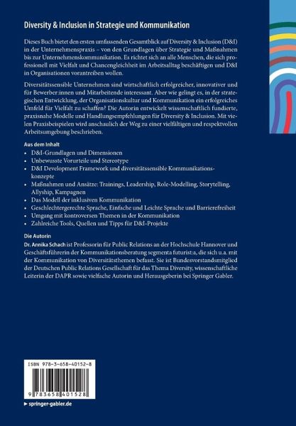 Dieses Buch bietet den ersten umfassenden Gesamtblick auf Diversity & Inclusion (D&I) in der Unternehmenspraxis - von den Grundlagen über Strategie und Maßnahmen bis zur Unternehmenskommunikation. Es richtet sich an alle, die sich professionell mit Vielfalt und Chancengleichheit im Arbeitsalltag beschäftigen und D&I in Organisationen vorantreiben wollen.