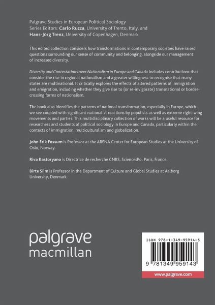Diversity and Contestations over Nationalism in Europe and Canada includes contributions that consider the rise in regional nationalism and a greater willingness to recognise that many states are multinational. It critically explores the effects of altered patterns of immigration and emigration, including whether they give rise to (or re-invigorate) transnational or border-crossing forms of nationalism.