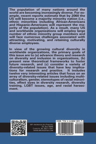 It is evident that organizations are becoming increasingly diverse because of the growing numbers of ethnic minorities in the U. S. and the rise in immigration around the world (U. S. Bureau of Census, 2019). Some estimates indicate that by 2060 ethnic minorities in the U. S. will actually make up the majority of the population (U. S. Bureau of Census, 2019), and national minority group members will constitute over 14% of the 770 million people in the European Union (Worldwide Population Estimates, 2017). Thus, organizations around the world are faced with numerous challenges associated with attracting, motivating, and retaining employees who are culturally diverse, and we need a better understanding of how to increase the inclusion of diverse group members in organizations. This edited book includes twelve cutting edge articles written by subject matter experts on an array of topics including: (a) the influence of multiculturalism on HR practices, (b) factors affecting the success of corporate women, (c) stereotypes of racial minorities, (d) effect sizes in diversity research, ( e) true identities of stigmatized persons, (f) diversity training, (g) LGBTQ issues, (h) age, (I) strategies for creating inclusive climates, (j) the development of measure of reactions to perceived discrimination, (k) racial harassment, and (l) unfair discrimination against immigrants. This timely book provides a critical resource for undergraduate and graduate classes in diversity and inclusion in organizations, human resource management, organizational behavior, organizational sociology, and industrial and organizational psychology. Apart from theories and research on diversity and inclusion, the book also considers implications for designing HR policies and processes in organizations. Therefore, the book is especially relevant for practitioners and human resource professionals because it provides guidance on HR practices that can help organizations attract and retain these new organizational members.