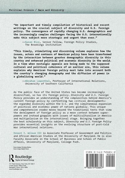 As the public face of American has changed, so has the face of its foreign policy. Diversity and U.S. Foreign Policy, goes beyond the traditional texts that focus on foreign policy only as a contest between super-powers to grapple with multiculturalism in America and multipolarism on the international state.