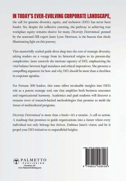 Unlock the Future of Strategic Diversity: A Proven DEI Blueprint for Fortune 500 Leaders & Academia. Navigating the intricate maze of diversity, equity, and inclusion (DEI) has been a daunting task for Fortune 500 CDOs, CHROs, and CEO's. While grad students immerse themselves in multicultural programs, they're seeking comprehensive methodologies that resonate with the evolving corporate world. Enter Diversity Determined. Janet Lynn Morrison, SPHR, GPHR, brings over two decades of unparalleled HR experience to the table, introducing a groundbreaking strategy. Through Diversity Determined, Janet…mehr