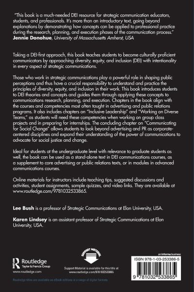 Taking a DEI-first approach, this book teaches students to become culturally proficient communicators by approaching diversity, equity, and inclusion (DEI) with intentionality in every aspect of strategic communications.