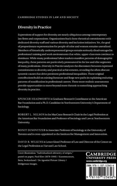 Expressions of support for diversity are nearly ubiquitous among contemporary law firms and corporations. Organizations back these rhetorical commitments with dedicated diversity staff and various diversity and inclusion initiatives. Yet, the goal of proportionate representation for people of color and women remains unrealized. Members of historically underrepresented groups remain seriously disadvantaged in professional training and work environments that white, upper-class men continue to dominate. While many professional labor markets manifest patterns of demographic inequality, these patterns are particularly pronounced in the law and elite segments of many professions. Diversity in Practice analyzes the disconnect between expressed commitments to diversity and practical achievements, revealing the often obscure systemic causes that drive persistent professional inequalities. These original contributions build on existing literature and forge new paths in explaining enduring patterns of stratification in professional careers. These more realistic assessments provide opportunities to move beyond mere rhetoric to something approaching diversity in practice.