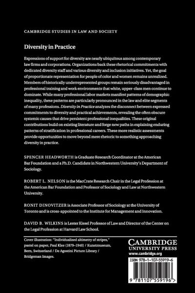Expressions of support for diversity are nearly ubiquitous among contemporary law firms and corporations. Organizations back these rhetorical commitments with dedicated diversity staff and various diversity and inclusion initiatives. Yet, the goal of proportionate representation for people of color and women remains unrealized. Members of historically underrepresented groups remain seriously disadvantaged in professional training and work environments that white, upper-class men continue to dominate. While many professional labor markets manifest patterns of demographic inequality, these patterns are particularly pronounced in the law and elite segments of many professions. Diversity in Practice analyzes the disconnect between expressed commitments to diversity and practical achievements, revealing the often obscure systemic causes that drive persistent professional inequalities. These original contributions build on existing literature and forge new paths in explaining enduring patterns of stratification in professional careers. These more realistic assessments provide opportunities to move beyond mere rhetoric to something approaching diversity in practice.