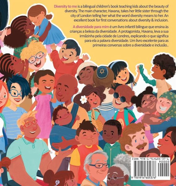 **BOOK AWARDS** 2023 International Book Awards FINALIST Diversity to me is a bilingual children's book teaching kids about the beauty of diversity. The main character, Havana, takes her little sister through the city of London telling her what the word diversity means to her. An excellent book for first conversations about diversity & inclusion. A diversidade para mim é um livro infantil bilíngue que ensina às crianças a beleza da diversidade. A protagonista, Havana, leva a sua irmãzinha pela cidade de Londres, explicando o que significa para ela a palavra diversidade. Um livro excelente para as primeiras conversas sobre a diversidade e inclusão. ************* Embark on a remarkable journey with our captivating bilingual children's book, designed to ignite a love for languages and a deep appreciation of diversity and inclusion. This book, perfect for kids aged 4-7, is more than just a language-learning tool-it's a key to unlocking a world of understanding and connection. ¿ BILINGUAL ADVENTURE Children thrive on exploration, and this book provides them with a bilingual adventure they'll cherish. It seamlessly blends English and Brazilian Portuguese, making language acquisition an exciting experience. ¿ EDUCATIONAL EXCELLENCE Designed as an excellent educational resource, "Diversity to me/a diversidade para mim" is a powerful tool for language teachers, schools, and educators in Portuguese-speaking countries. It enriches language curriculums, making learning more engaging and helps improve children's language development in English as well as Brazilian Portuguese. ¿ FIRST WORDS For the littlest language learners, this book is a perfect introduction to their first words in Brazilian Portuguese. The simple, engaging content ensures that language acquisition is enjoyable and effective. ¿ MULTICULTURAL AWARENESS With over 30 pages of diverse and fun illustrations, children are exposed to the richness of multiculturalism. This book is more than just language learning; it's a platform for conversations about the beautiful cultures of the world. ¿ FOSTERING CONVERSATIONS The 30+ pages featuring diverse and inclusive characters provide a foundation for conversations with parents, caregivers, and educators. It's a catalyst for discussions on multiculturalism, diversity, and the beauty of differences. ¿Open the door to a world of languages, diversity, and inclusion with DIVERSITY TO ME / A DIVERSIDADE PARA MIM ¿