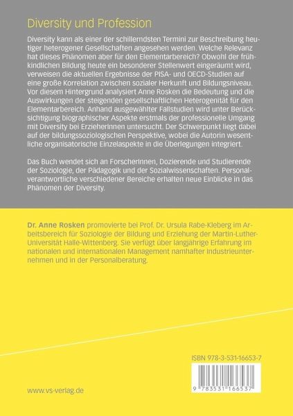 Im Zentrum der vorgelegten Dissertation von Frau Rosken steht das Phänomen Diversity und die Frage, welche Arten des professionellen Umgangs Erzieherinnen mit diesem Phänomen entwickeln. Eine entsprechende Untersuchung ist im Bereich Elementarer Bildung bislang unbekannt, die Arbeit von Frau Rosken hat damit Pilotfunktion. Dabei ist Diversity ein Begriff, der in den letzten Jahren als Ausdruck für - ziale Vielfalt, unterschiedliche Milieus und Ethnien, für divergierende Interessen und Bedürfnisse von Individuen und Gruppierungen in die Diskussion gekommen ist. Allzu oft gerät er in den Strudel gut meinender Sichtweisen. Was dann bleibt, ist buntes Vielerlei und harmonisches Miteinander - zumindest als normatives K- strukt. Gegen solche Formen des Weichzeichnens von Phänomenen der Diversity setzt Anne Rosken mit der vorliegenden Arbeit einen eindeutigen Kontrapunkt. So forscht sie nach Diversity-Kompetenzen bei Erzieherinnen, d. h. nach Fähigkeiten, professionell mit Unterschiedenund Ungleichheit, Fremdheit und Auffälligkeiten bei den Kindern umzugehen. Die Autorin richtet ihren Blick insbesondere auf das Wissen, auf subjektive pädagogische Konzepte, auf Haltungen sowie auf Fähigk- ten und Kompetenzen im pädagogischen Handeln im Kontext von Diversity. Sie vermutet, dass weniger pädagogisch-professionelle Konzepte und die berufliche Aus- und Fortbildung die Ausprägung dieser spezifischen Kompetenzen beeinfl- sen, da es entsprechende Konzepte, wenn überhaupt, ja auch nur in Ansätzen gibt.