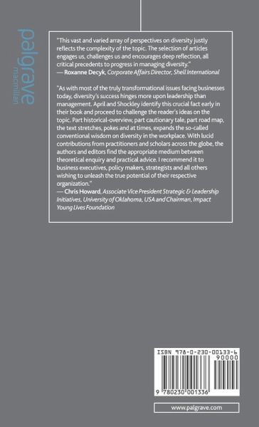 'As with most of the truly transformational issues facing businesses today, diversity's success hinges more upon leadership than management. April and Shockley identify this crucial fact early in their book and proceed to challenge the reader's ideas on the topic. Part historical-overview, part cautionary tale, part road map, the text stretches, pokes and at times, expands the so-called conventional wisdom on diversity in the workplace. With lucid contributions from practitioners and scholars across the globe, the authors and editors find the appropriate medium between theoretical enquiry and practical advice. I recommend it to business executives, policy makers, strategists and all others wishing to unleash the true potential of their respective organization.' - Chris Howard, Associate Vice President Strategic & Leadership Initiatives, University of Oklahoma, USA and Chairman, Impact Young Lives Foundation