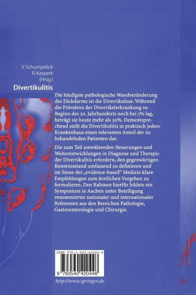 I Grundlagen (Anatomie, Ätiologie, Physiologie, Pathologie).- 1 Divertikel: Allgemeine Grundlagen der Nomenklatur, Klassifikation, Lokalisation und Anatomie.- 2 Historische Entwicklungen.- 3 Divertikulose - eine ernährungsbedingte Volkskrankheit.- 4 Ursachen der Divertikelbildung: Motilitätsstörungen oder Drucksteigerung?.- 5 Ist die Divertikelkrankheit mit intestinalen Innervationsstörungen assoziiert?.- 6 Modell zur In-vitro-Untersuchung von Motilitätsstörungen des Kolons - Erste Ergebnisse zur Divertikulose.- 7 Matrixmetalloproteinasen (MMP) und ihr Einfluss auf die Pathogenese der Divertikelerkrankung Eine immunhistochemische und morphometrische Studie.- 8 Gibt es ultrastrukturelle Veränderungen, die zu einer Divertikelbildung prädestinieren?.- 9 Pathologie der Divertikulose/Divertikulitis des Kolons.- 10 Zusammenfassung Grundlagen (Anatomie, Ätiologie, Physiologie, Pathologie).- IIa Klinik und Komplikationen I.- 11 Divertikelträger: Bei wem entwickelt sich aus einer Divertikulose eine Divertikulitis?.- 12 Divertikulitis: Klassifikation nach Schweregraden.- 13 Erfahrungen mit einer klinisch-pragmatischen Stadieneinteilung.- 14 Warum entwickeln Divertikel im Sigmadickdarm häufiger Komplikationen als Divertikel anderer Lokalisationen?.- 15 Ist die Divertikulitis bei unter 40- bis 50-Jährigen eine aggressivere Erkrankung?.- 16 Zusammenfassung Klinik und Komplikationen I.- IIb Klinik und Komplikationen II.- 17 Divertikelblutung als selbstlimitierende Komplikation?.- 18 Interventionelle Therapie bei divertikulitischem Abszess.- 19 Divertikulitis - ein Chamäleon im klinischen Erscheinungsbild.- 20 Besonderheiten der Divertikulitis beim Diabetiker.- 21 Natürlicher Verlauf der Divertikulitis - eine Langzeitstudie.- 22 Verlauf der operativ undkonservativ behandelten Sigmadivertikulitis.- 23 Zusammenfassung Klinik und Komplikationen II.- IIIa Diagnostik I.- 24 Stellenwert der Sonographie in der Diagnostik der Kolondivertikulitis.- 25 Divertikulitis - wann Kolonkontrasteinlauf oder CT?.- 26 Das Hydro-CT in der Diagnostik der Sigmadivertikulitis.- 27 Was leistet das CT bei der Stadieneinteilung der Kolondivertikulitis?.- 28 Divertikulitis - Stellenwert der Endoskopie.- 29 Diagnostisches Vorgehen bei Verdacht auf Divertikelblutung.- 30 Zusammenfassung Diagnostik I.- IIIb Diagnostik II und Konservative Therapie.- 31 Welche Diagnostik ist nach erfolgreicher medikamentös-konservativer Therapie einer akuten unkomplizierten Divertikulitis durchzuführen?.- 32 Präoperative Diagnostik bei der Divertikulitis Was ist unter besonderer Berücksichtigung der Kosten-Nutzen-Relation notwendig?.- 33 Konservative Therapie der akuten Divertikulitis - Standards?.- 34 Zusammenfassung Diagnostik II und Konservative Therapie.- IVa Operative Therapie I.- 35 Natural history of diverticular disease.- 36 Wie definiert sich der optimale Resektionszeitpunkt nach einem akuten Schub einer unkomplizierten Divertikulitis?.- 37 Muss die einfache Sigmadivertikulitis laparoskopisch operiert werden?.- 38 Grenzen des laparoskopischen Vorgehens?.- 39 Ergebnisse und Indikation der laparoskopischen Sigmaresektion bei der komplizierten Verlaufsform der Divertikulitis.- 40 Laparoskopische Chirurgie der Sigmadivertikulitis auch im fortgeschrittenen Hinchey-Stadium.- 41 Laparoskopische versus offene Technik: Lebensqualität.- 42 Zusammenfassung Operative Therapie I.- IVb Operative Therapie II.- 43 Wann und wie wird bei/nach einer Divertikelblutung reseziert?.- 44 Prognostische Kriterien bei komplizierter Divertikulitis. Grenzen des einzeitigenVerfahrens.- 45 Stufenkonzept der Behandlung der Peritonitis bei Divertikulitis.- 46 Diskontinuitätsresektion bei komplizierter Divertikulitis: Chancen der Kontinuitätswiederherstellung?.- 47 Rechtsdivertikulitis - Besonderheiten des Vorgehens.- 48 Zusammenfassung Operative Therapie II.- IVc Operative Therapie III.- 49 Gibt es eine Rezidivgefahr nach Resektion?.- 50 Rezidiv nach operativer Therapie der Kolondivertikulitis - eine Nachuntersuchung.- 51 Incidence and Prevention of Adhesions after Surgical Treatment or Diverticular Disease.- 52 Postoperative Komplikationen bei Divertikulitis.- 53 Handassistierte laparoskopische elektive Chirurgie der Sigmadivertikulitis Guter Kompromiss oder nicht mehr minimal-invasiv?.- 54 Zusammenfassung Operative Therapie III.- IVd Operative Therapie IV.- 55 Stage-Dependent Surgery of Colonic Diverticulitis.- 56 What is Evidence-based in Surgery for Diverticular Disease of the Colon?.