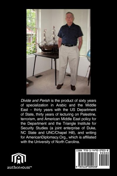 Divide and Perish is the product of sixty years of specialization in Arabic and the Middle East - thirty years with the US Department of State, thirty years of lecturing on Palestine, terrorism, and American Middle East policy for the Department and the Triangle Institute for Security Studies (a joint enterprise of Duke, NC State and UNC/Chapel Hill), and writing for AmericanDiplomacy.Org., which is affiliated with the University of North Carolina.