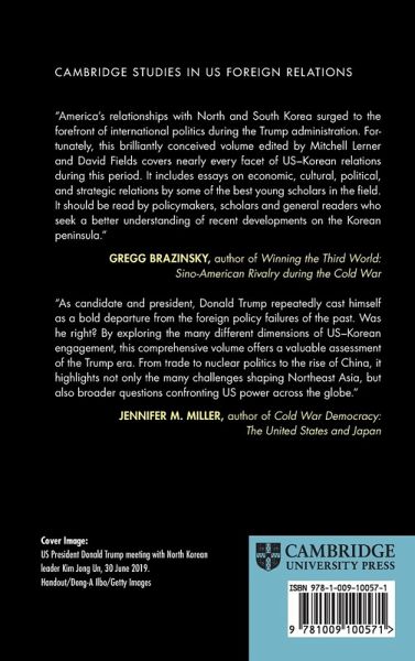 Introduction Ambassador Kathleen Stephens; 1. The Trump Administration's place in the history of US-relations with the Korean Peninsula David Fields; 2. Behind the numbers: Trump's hidden impact on US-Korea economic relations Kyle Ferrier; 3. Plus ça Change? South Korean public opinion of the United States during the Trump Administration Steven Denney; 4. The Trumpian wake-up call: South Korea's search for security beyond the alliance Go Myong-hyun; 5. North Korean human rights during the Trump Administration Danielle Chubb; 6. South Korean public diplomacy vis-à-vis the United States: finding support for policies in Washington DC Kadir Jun Ayhan; 7. Stunted growth or growing pains: the US-ROK Alliance in the Trump Era Clint Work; 8. Inflection points: US-China-North Korea relations in the Trump years David Cheng Chang; 9. How to make friends and alienate people: Japan's relations with the US and the Koreas, 2017-2020 Fintan Hoey; Conclusion: the Trump legacy in Korea, East Asia, and the World Mitchell Lerner.