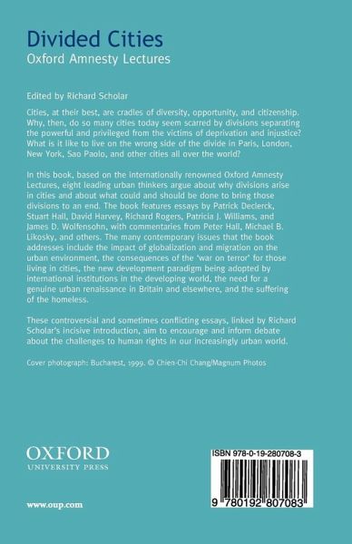 In this book, based on the internationally renowned Oxford Amnesty Lectures, eight leading urban thinkers argue about why divisions arise in cities and about what could and should be done to bring those divisions to an end. The book features essays by Patrick Declerck, Stuart Hall, David Harvey, Richard Rogers, Patricia Williams, and James Wolfensohn, with commentaries from Peter Hall, Michael Likosky, and others. The many contemporary issues that the book addresses include the impact of