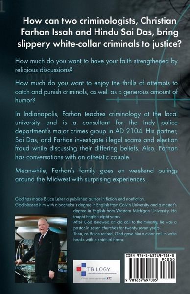 How can two criminologists, Christian Farhan Issah and Hindu Sai Das, bring slippery white-collar criminals to justice? How much do you want to have your faith strengthened by religious discussions? How much do you want to enjoy the thrills of attempts to catch and punish criminals, as well as a generous amount of humor? In Indianapolis, Farhan teaches criminology at the local university and is a consultant for the Indy police department's major crimes group in AD 2104. His partner, Sai Das, and Farhan investigate illegal scams and election fraud while discussing their differing beliefs. Also, Farhan has conversations with an atheistic couple. Meanwhile, Farhan's family goes on weekend outings around the Midwest with surprising experiences.
