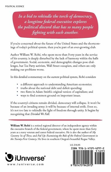 In a bid to rekindle the torch of democracy, a longtime federal executive explores the political discord that has so many people fighting with each another. ¿ truths about the national debt and deficit spending; ¿ two flaws in Adam Smith's original version of capitalism; and ¿ ways to find common ground on important issues. If the country's citizens remain divided, democracy will collapse. It won't be because of an invading army; it will be because of internal strife. Even so, it's not too late to rekindle the light of freedom through unity. It begins by recognizing that Divided We Fall.