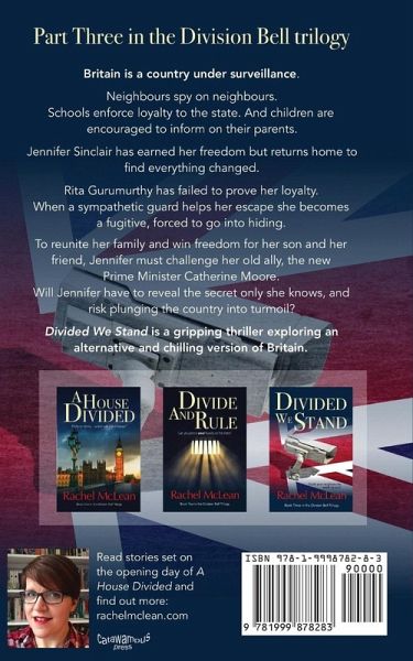 Britain is a country under surveillance. Neighbours spy on neighbours. Schools enforce loyalty to the state. And children are encouraged to inform on their parents. Jennifer Sinclair has earned her freedom but returns home to find everything changed. Rita Gurumurthy has failed to prove her loyalty. When a sympathetic guard helps her escape she becomes a fugitive, forced to go into hiding. To reunite her family and win freedom for her son and her friend, Jennifer must challenge her old ally, the new Prime Minister Catherine Moore. Will Jennifer have to reveal the secret only she knows, and risk plunging the country into turmoil? Divided We Stand is a gripping thriller exploring an alternative and chilling version of Britain.