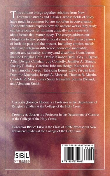 "This volume brings together scholars from New Testament Studies and classics, whose fields of study have much in common but are not often in conversation. The contributors explore how the ancient works they study can be resources for thinking critically and creatively about issues that matter today. The essays address our obligation to take positive moral stands on divisive issues of both the past and the present, including empire, racial/ethnic and religious difference, economic inequality, gender and sexuality, slavery, and disability"--