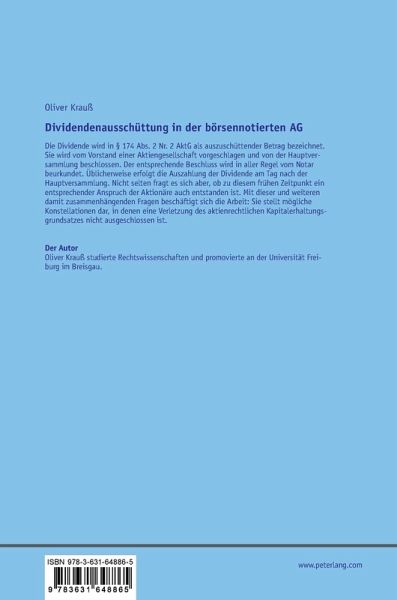 174 Abs. 2 Nr. 2 AktG als auszuschüttender Betrag bezeichnet. Sie wird vom Vorstand einer Aktiengesellschaft vorgeschlagen und von der Hauptversammlung beschlossen. Der entsprechende Beschluss wird in aller Regel vom Notar beurkundet. Üblicherweise erfolgt die Auszahlung der Dividende am Tag nach der Hauptversammlung. Nicht selten fragt es sich aber, ob zu diesem frühen Zeitpunkt ein entsprechender Anspruch der Aktionäre auch entstanden ist. Mit dieser und weiteren damit zusammenhängenden Fragen beschäftigt sich die Arbeit: Sie stellt mögliche Konstellationen dar, in denen eine Verletzung des aktienrechtlichen Kapitalerhaltungsgrundsatzes nicht ausgeschlossen ist.