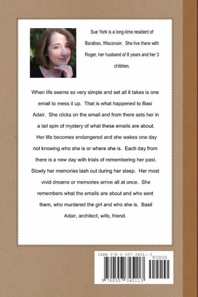 When life seems so very simple and set all it takes is one email to mess it up. That is what happened to Basil Adair. She clicks on the email and from there sets her in a tail spin of mystery of what these emails are about. Her life becomes endangered and she wakes one day not knowing who she is or where she is. Each day from there is a new day with trials of remembering her past. Slowly her memories lash out during her sleep. Her most vivid dreams or memories arrive all at once. She remembers what the emails are about and who sent them, who murdered the girl and who she is. Basil Adair, architect, wife, friend.