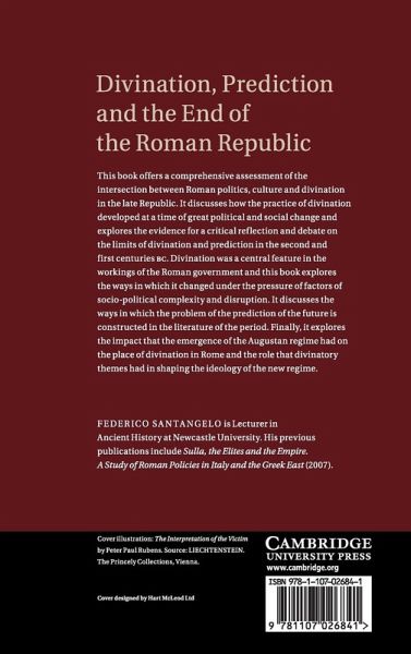 This book offers a comprehensive assessment of the intersection between Roman politics, culture and divination in the late Republic. It discusses how the practice of divination changed at a time of great political and social change and explores the evidence for a critical reflection and debate on the limits of divination and prediction in the second and first centuries BC. Divination was a central feature in the workings of the Roman government and this book explores the ways in which it changed under the pressure of factors of socio-political complexity and disruption. It discusses the ways in which the problem of the prediction of the future is constructed in the literature of the period. Finally, it explores the impact that the emergence of the Augustan regime had on the place of divination in Rome and the role that divinatory themes had in shaping the ideology of the new regime.