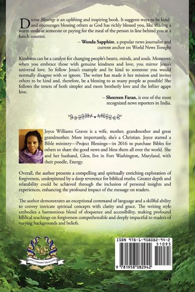 Divine Blessings is an uplifting and inspiring book. It suggests ways to be kind and encourages blessings others as God has richly blessed you, like sharing a warm smile at someone or paying for the meal of the person in line behind you at a lunch counter. Kindness can be a catalyst for changing people's hearts, minds, and souls. Moreover, when you embrace those with genuine kindness and love, you mirror Jesus's universal love. So follow Jesus's example and be kind to someone you would normally disagree with or ignore. The writer has made it her mission and invites others to be kind and, therefore, be a blessing to as many people as possible! She follows the tenets of both simpler and more brotherly love and the loftier agape love.