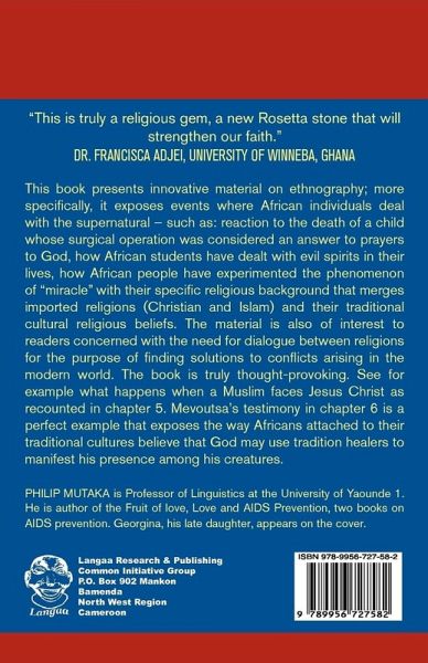 This book presents innovative material on ethnography; more specifically, it exposes events where African individuals deal with the supernatural - such as: reaction to the death of a child whose surgical operation was considered an answer to prayers to God, how African students have dealt with evil spirits in their lives, how African people have experimented the phenomenon of 'miracle' with their specific religious background that merges imported religions (Christian and Islam) and their traditional cultural religious beliefs. The material is also of interest to readers concerned with the need for dialogue between religions for the purpose of finding solutions to conflicts arising in the modern world. The book is truly thought-provoking. See for example what happens when a Muslim faces Jesus Christ as recounted in chapter 5. Mevoutsa's testimony in chapter 6 is a perfect example that exposes the way Africans attached to their traditional cultures believe that God may use tradition healers to manifest his presence among his creatures.