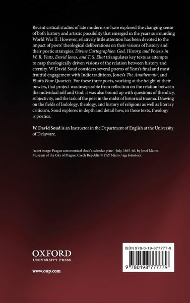 Recent critical studies of late modernism have explored the changing sense of both history and artistic possibility that emerged in the years surrounding World War II. However, relatively little attention has been devoted to the impact of poets' theological deliberations on their visions of history and their poetic strategies. Divine Cartographies: God, History, and Poiesis in W. B. Yeats, David Jones, and T. S. Eliot triangulates key texts as attempts to map theologically driven visions of the relation between history and eternity. W. David Soud considers several poems of Yeats's final and most fruitful engagement with Indic traditions, Jones's The Anathemata, and Eliot's Four Quartets. For these three poets, working at the height of their powers, that project was inseparable from reflection on the relation between the individual self and God; it was also bound up with questions of theodicy, subjectivity, and the task of the poet in the midst of historical trauma. Drawing on the fields of Indology, theology, and history of religions as well as literary criticism, Soud explores in depth and detail how, in these texts, theology is poetics.