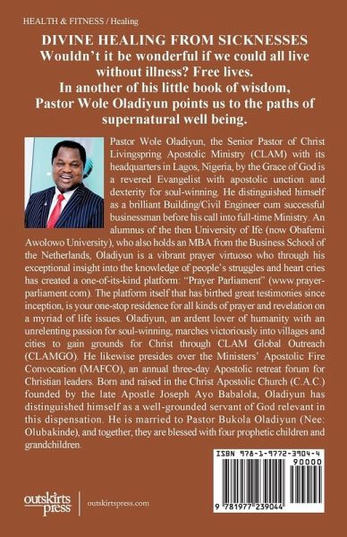 The Divine Healing from Sicknesses book comprises six (6) chapters in all, in chapter one (1) which talks about the title of the book itself, here the author reflects his mind on the healing from sicknesses through supernatural intervention. Also in chapter two (2) - Body Organ Divine Purging/Sanitization; this breaks down the process of healing in various body components, and how you could apply supernatural principles to live a healthy life. Living a sickness-free life is of great importance to the human race, people all over the world have this in common. This book is a go-to material for any reader, not just for the sick, but as well for people who desire to live a healthy lifestyle. As you read this book, the healing power and virtue in the blood of Jesus Christ shall flow into your body in Jesus' name.