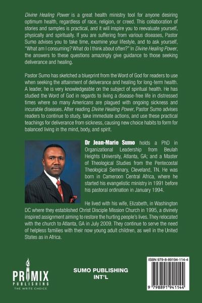 Divine Healing Power is a great health ministry tool for anyone desiring optimum health, regardless of race, religion, or creed. This collaboration of stories and samples is practical, and it will inspire you to reevaluate yourself, physically and spiritually. If you are suffering from various diseases, Pastor Sumo advises you to take time, examine your lifestyle, and to ask yourself, "What am I consuming? What do I think about often?" In Divine Healing Power, the answers to these questions amazingly give guidance to those seeking deliverance and healing. Pastor Sumo has sketched a blueprint from the Word of God for readers to use when seeking the attainment of deliverance and healing for long-term health. A leader, he is very knowledgeable on the subject of spiritual health. He has studied the Word of God in regards to living a disease-free life in distressed times where so many Americans are plagued with ongoing sickness and incurable diseases. After reading Divine Healing Power, Pastor Sumo advises readers to continue to study, take immediate actions, and use these practical teachings for deliverance from sickness, causing new choice habits to form for balanced living in the mind, body, and spirit.