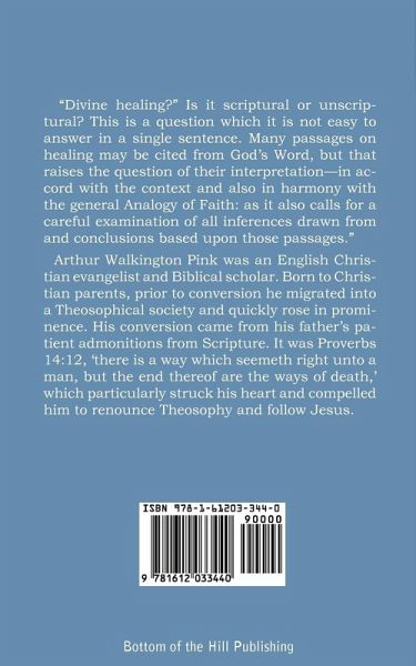 "Divine healing?" Is it scriptural or unscriptural? This is a question which it is not easy to answer in a single sentence. Many passages on healing may be cited from God's Word, but that raises the question of their interpretation-in accord with the context and also in harmony with the general Analogy of Faith: as it also calls for a careful examination of all inferences drawn from and conclusions based upon those passages." Arthur Walkington Pink was an English Christian evangelist and Biblical scholar. Born to Christian parents, prior to conversion he migrated into a Theosophical society and quickly rose in prominence. His conversion came from his father's patient admonitions from Scripture. It was Proverbs 14:12, 'there is a way which seemeth right unto a man, but the end thereof are the ways of death,' which particularly struck his heart and compelled him to renounce Theosophy and follow Jesus.