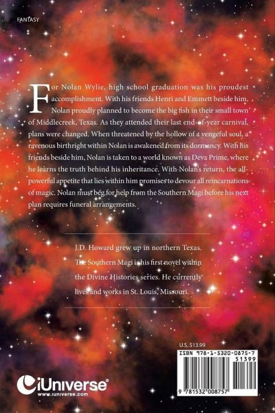 For Nolan Wylie, high school graduation was his proudest accomplishment. With his friends Henri and Emmett beside him, Nolan proudly planned to become the big fi sh in their small town of Middlecreek, Texas. As they attended their last end-of-year carnival, plans were changed. When threatened by the hollow of a vengeful soul, a ravenous birthright within Nolan is awakened from its dormancy. With his friends beside him, Nolan is taken to a world known as Deva Prime, where he learns the truth behind his inheritance. With Nolan's return, the all powerful appetite that lies within him promises to devour all reincarnations of magic. Nolan must beg for help from the Southern Magi before his next plan requires funeral arrangements.