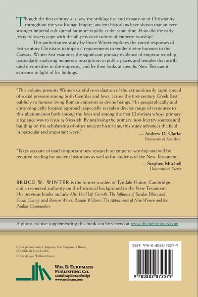 Though the first century a.d. saw the striking rise and expansion of Christianity throughout the vast Roman Empire, ancient historians have shown that an even stronger imperial cult spread far more rapidly at the same time. How did the early Jesus-followers cope with the all-pervasive culture of emperor worship? This authoritative study by Bruce Winter explores the varied responses of first-century Christians to imperial requirements to render divine honours to the Caesars. Winter first examines the significant primary evidence of emperor worship, particularly analysing numerous inscriptions in public places and temples that attributed divine titles to the emperors, and he then looks at specific New Testament evidence in light of his findings.