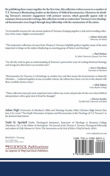 By publishing these essays together for the first time, this collection widens access to a number of T. F. Torrance's illuminating studies on the history of biblical hermeneutics. Moreover, by detailing Torrance's extensive engagement with primary sources, which generally appear only in summary form across his writings, this collection reveals to readers how Torrance's own theological hermeneutics were forged through deep fellowship with the communion of the saints.