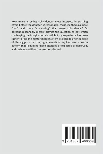 How many arresting coincidences must intersect in startling effect before the doubter, if reasonable, must see them as more "real" and more "convincing" than mere coincidence? Or perhaps reasonably merely dismiss the question as not worth challenging the imagination about? But my experience has been rather to find the matter more insistent as episode after episode of life suggests that the signal events of my life have woven a pattern that I could not have intended or expected or deserved, and certainly neither foresaw nor planned.